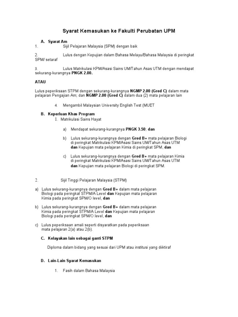 Syarat kemasukan ke fakulti perubatan upm.
